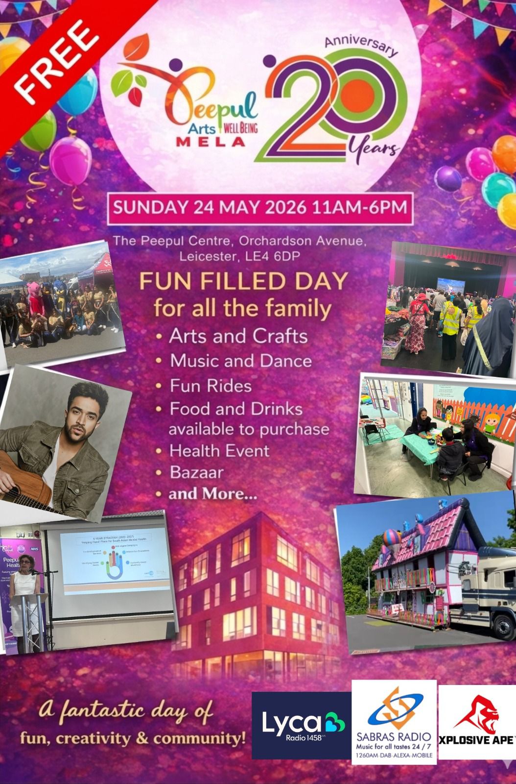 #PeepulMela #LeicesterEvents #FamilyFunDay #PeepulCentre #LeicesterCommunity #20thAnniversary #FreeEventsLeicester